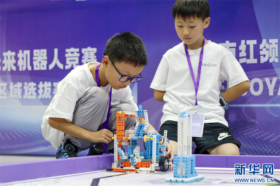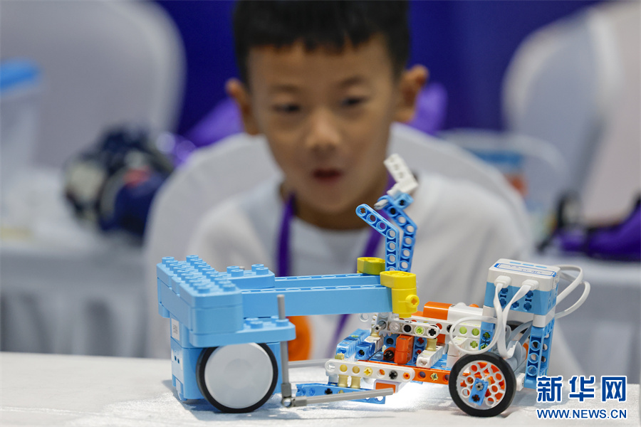 此次赛事设置多重创意关卡,如穿越障碍、识别、分拣、搬运物品等,选手们需通过精心编写的程序,指挥机器人完成各种动作,综合应用智能机器人技术来创造性地解决问题。赛事旨在提供展示创意与才华的舞台,让选手们比拼竞技,交流心得,共同成长。新华网发(施亚磊 摄)