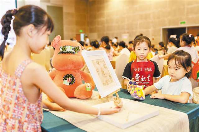 在“夏布创意造物”环节,各组亲子家庭纷纷参与到夏布画、夏布扇、夏布绣、夏布包和夏布饰品的制作中,将现场气氛推向高潮。